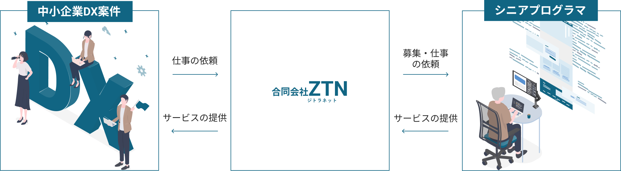 ジトラネットは経験の豊かなシニア人材 (Z) と次世代が協力し